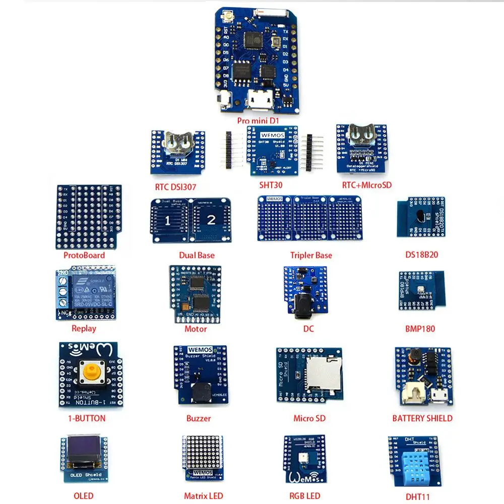 20 EN 1 KITS D1 Mini Pro (V1.1.0) Learning Kit And MINI D1(OLED buzzer micro SD BMP180 WS18B20 1-bu