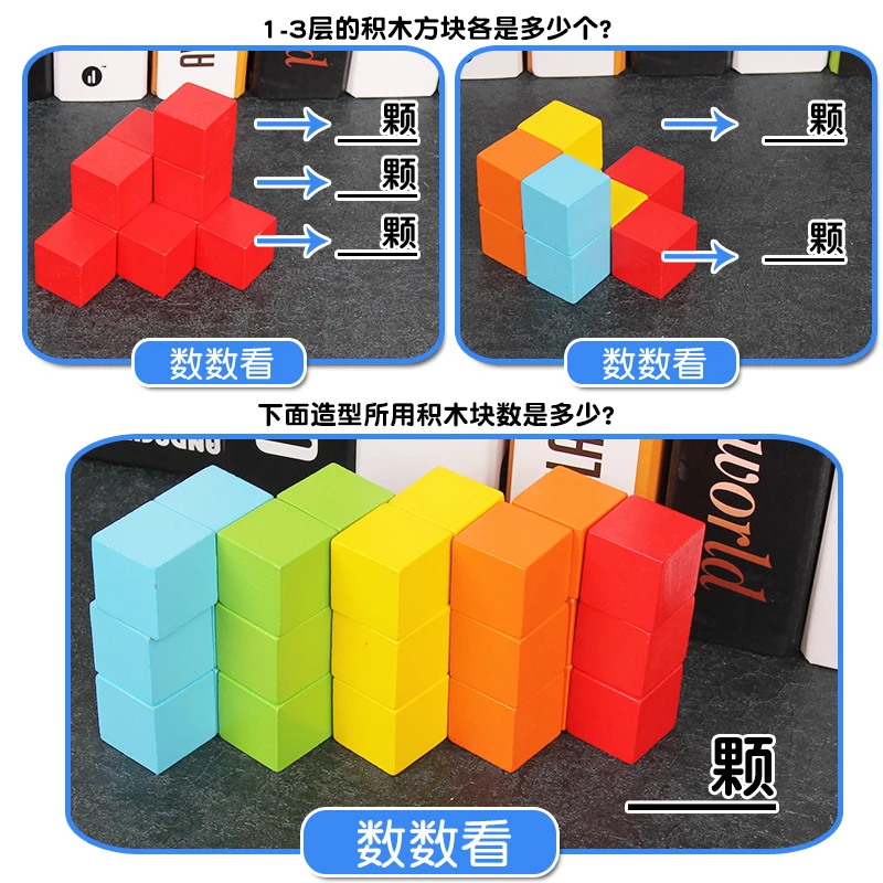 Montessori 100 pcs colorful Wooden Stacking Up Building Blocks Square Cubes wooden blocks for child