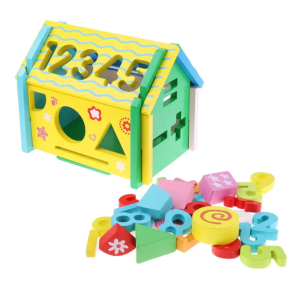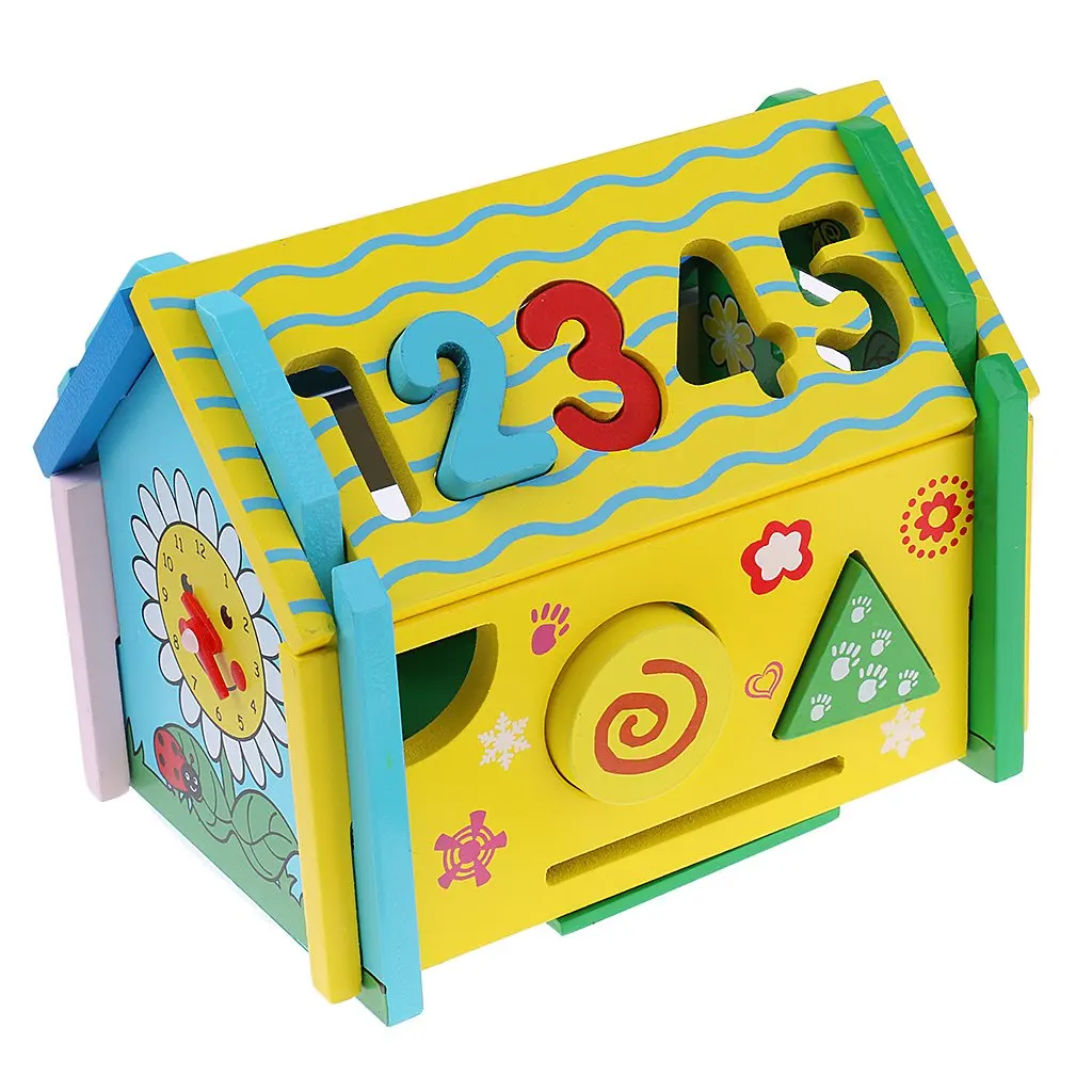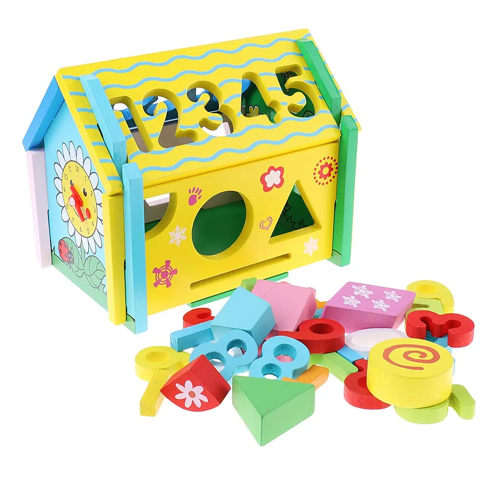 Wooden House Clock Number Geometric Blocks Matching Game Montessori Early Learning Sensory Educatio