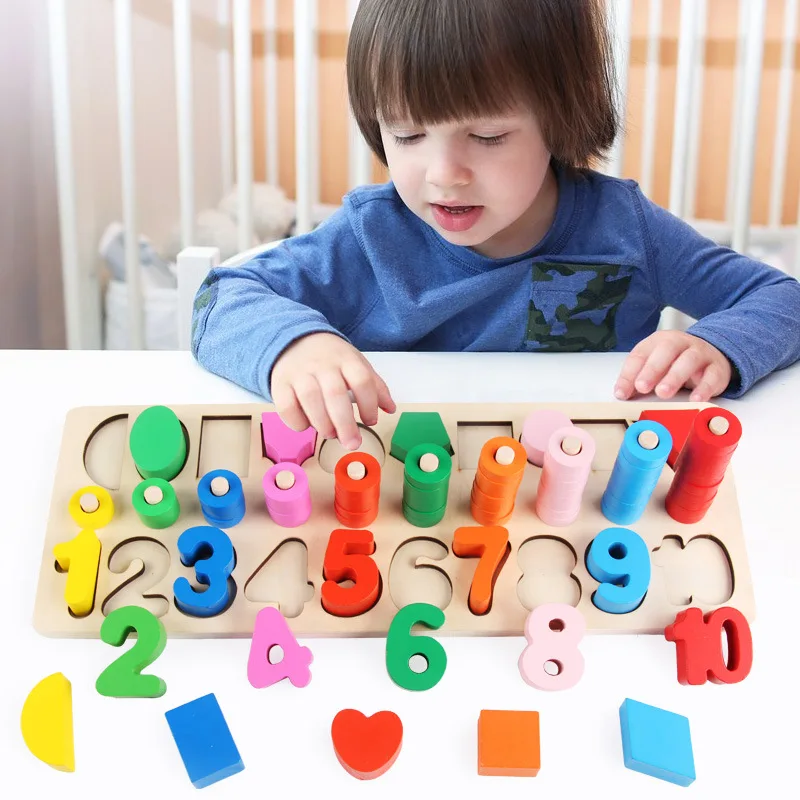Shape Matching Number Board Montessori Educational Wooden Toys 3-6Yrs Letters Preshcool Toddler Lea