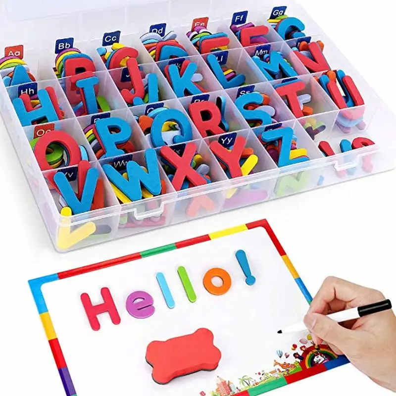 BEST QUALITY YOOAP Magnetic Letters Kit 208 Pcs with Double-Side Magnet Board - Foam Alphabet Letters for Kids S