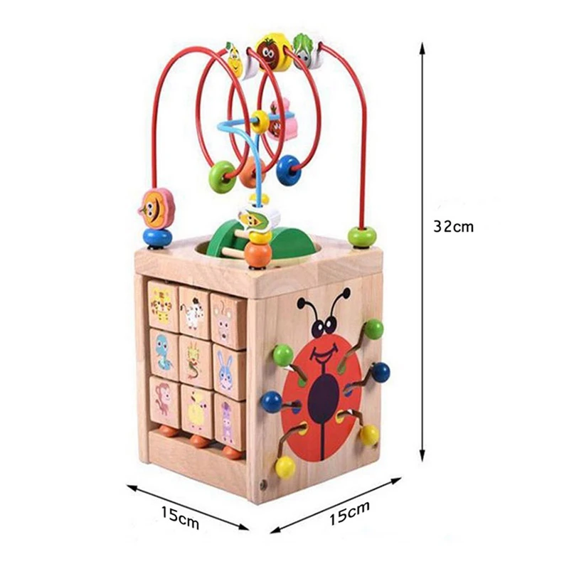 FBIL-Multi-Function 6 In 1 Wooden Math Around Bead Maze Letters Recognition Abacus Clock Learning E