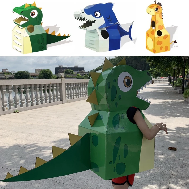DIY Arts Animal Costumes For Kids early learning Dinosaur Giraffe Carton Costume Children Stage Sho